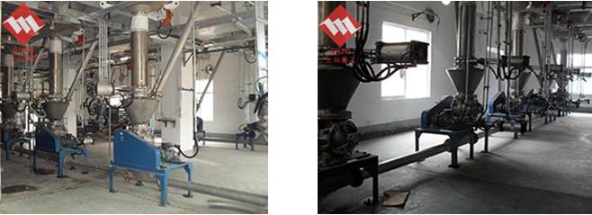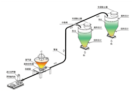 一、系统介绍 本系统一般采用罗茨鼓风机作为气源,旋转供料器、喷射器等作为供料装置,物料经供料装置进入输送管道,与高速气力混合后输送到末端收料仓,通过料气分离装置过滤后的气体排入大气;适合输送距离较短(300米以内)、 物料磨损性小、多个收料仓的工程。 系统优点:输送过程稳定,易实现一处向多处分散输送,且管道内为正压,即使管道泄漏也不会对输送的物料造成污染。 二、技术规格参数
